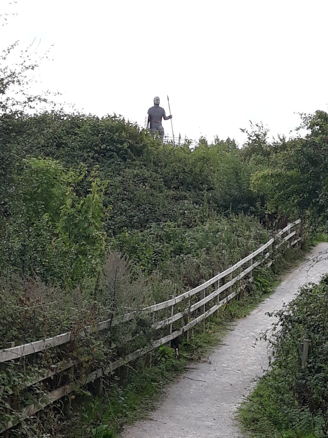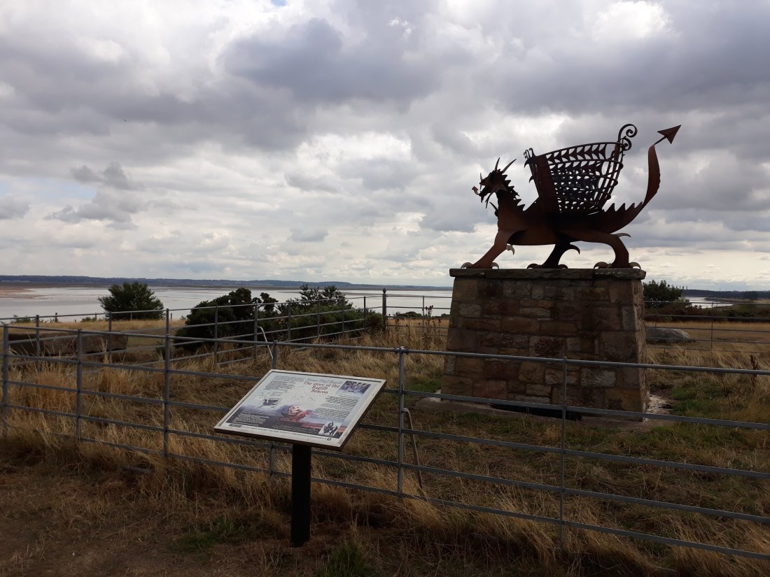 It was warm and sunny and this was a lovely walk all in all, scenic estuary on the right and dodging various chemical plants and there was lots of evidence of a previous industrial past generally to the left. The highlight of the morning was an impressive fire beacon dragon at Bettisfield. I was less happy with the solitary soldier I found because it looked very real until I got closer to it!