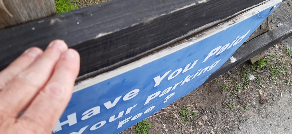 I strolled back along the very convenient flat path between Pwllgwaelod and Cwm-yr-Eglwys, that takes about 15 minutes. Pretty uneventful but nice to see some trees, and a bit of excitement was a diversion around a caravan park at the far end! For completeness I touched my starting touching point and headed off to the Co-op in Fishguard to get some provisions.