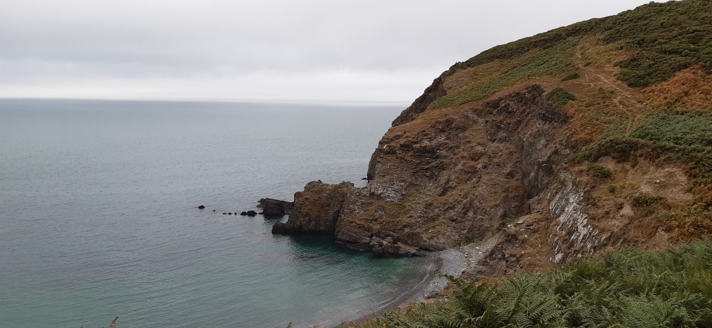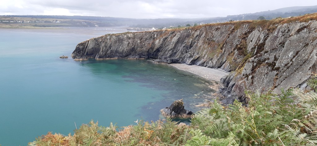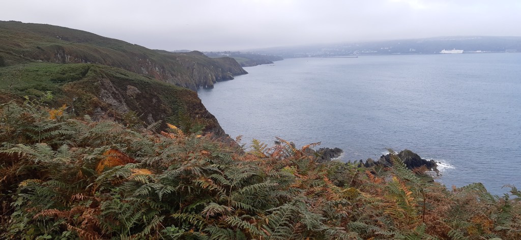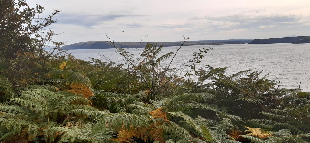 The rain had eased, and I set off initially through the edge of Parrog (Newport), a little stretch on the beach and then up on to a low level cliff. After the rain I had a few issues with my boots and paused to do some adjustments. I was concerned about blisters with soaked boots (and had spotted something heading in that direction on my big toe) which I did not want to get any worse. I wound around the cliffs, and the bracken was beginning to look particularly autumnal.