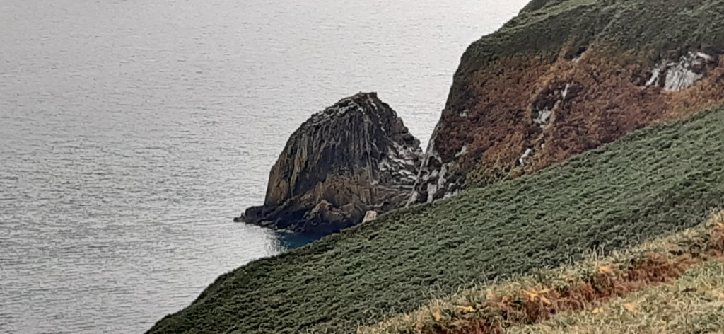 I took the car to Cwm-yr-Eglwys (with a suitable remains of a church in place) after a leisurely start to the day and then tackled the circuit round Dinas head/island. I used a coast path sign as a touching post to start. I took the lower option to get a better view of Needle rock, but was rather underwhelmed, and height had to be gained of course a bit further on. Once I had warmed up, my aches and pains seemed to drift away. It was quite busy with lots of other walkers of all abilities too (and some in MOST unsuitable footwear!).