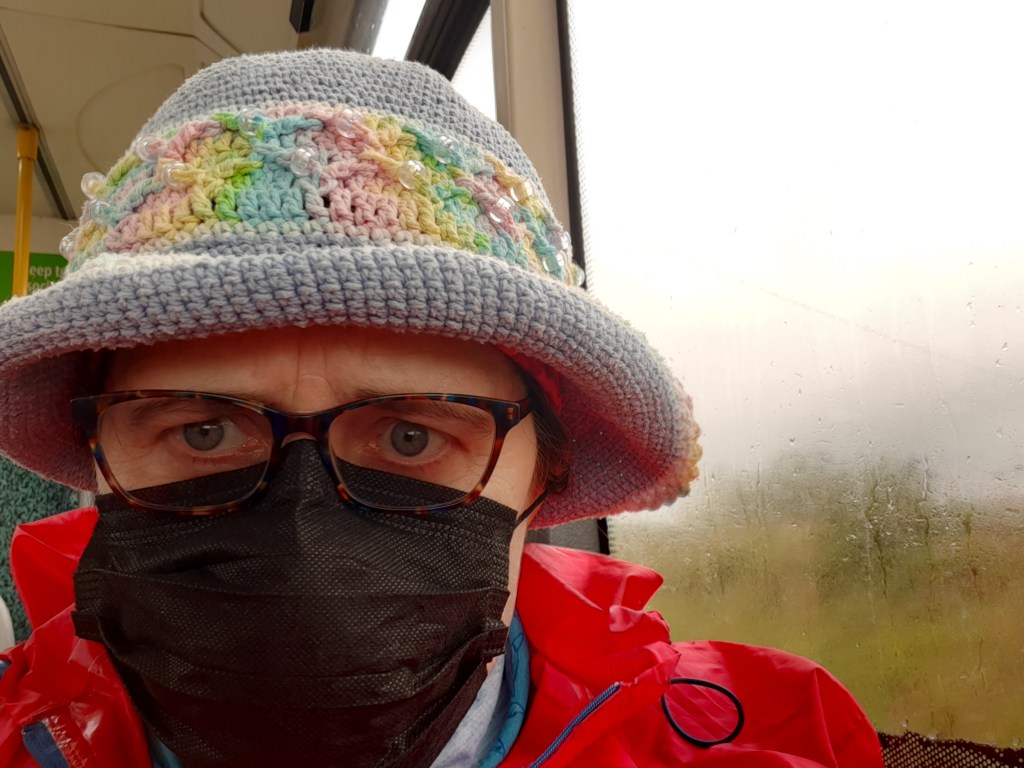 Set off a little earlier than really necessary, so I could park the car at the old fort above Fishguard and walk down to the bus stop at lower Fishguard (establishing a touching point on a flower tub near the bus stop) and then waiting for the Poppet Rocket. It was running a little late and I was the only customer for the ride from there back to Pwllgwaelod. I had a chat with the driver about my plans for the day, and he discussed his experience of the walk I was going to do. Thankfully it was a shorter bus ride today – so not enough time to end up feeling queasy!