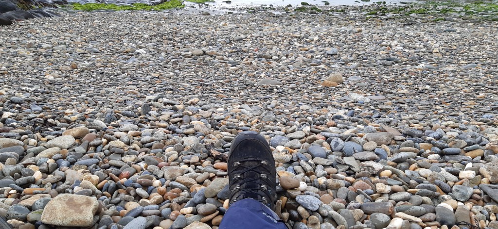 I stopped for lunch on my first stony beach lunch spot on this holiday. The rain fell heavily but there was lots to watch, a family of gulls, another very persistent seal and finally a bit of a stand off between the gull parents and a heron who tried to settle. They successfully scared it off after about 10 minutes.
