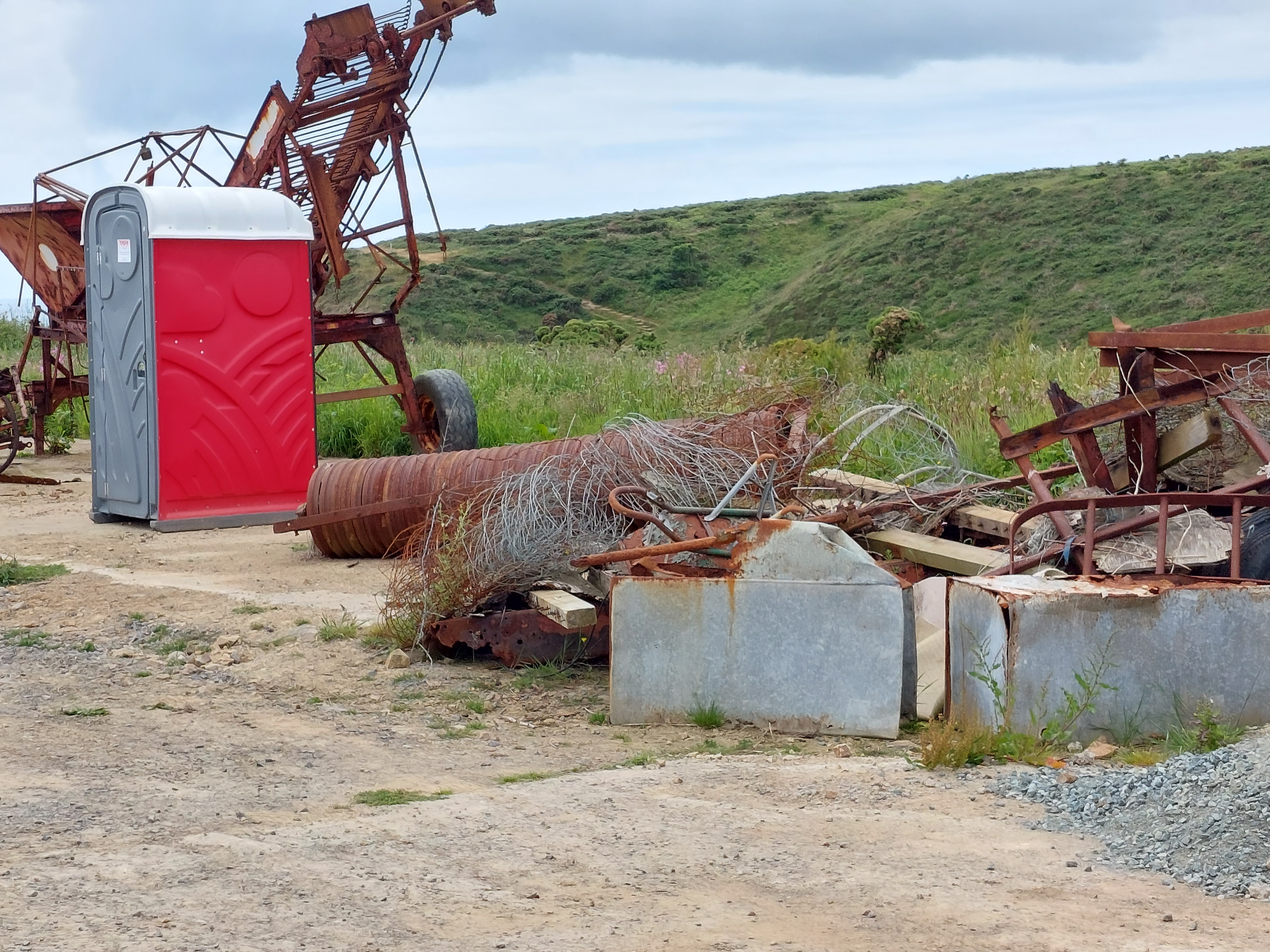 After lunch I walked back up to the holiday let, seeing more ponies and the archaeologist’s portaloo amongst various farm machinery long unused.