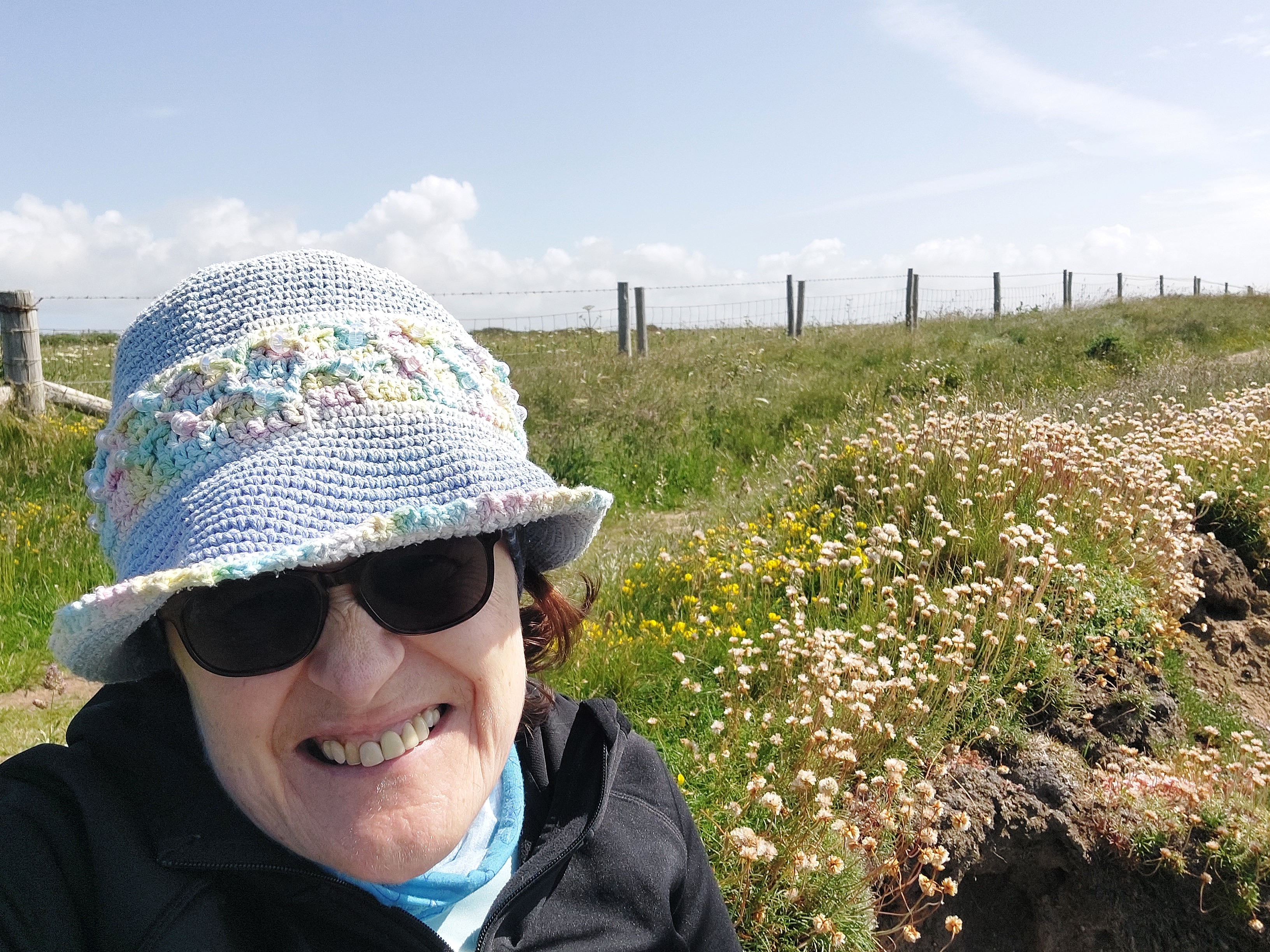 I wasn’t paying attention and started on the wrong path! After a straying into a caravan site and getting further away from the coast, I realised my mistake. Fortunately, I found a connecting path and was soon enjoying the delights of slightly lower cliffs than the last couple of days. I saw 2 lots of cliff climbers (the second lot being from Birmingham University) and a large group of ‘coasteerers’ initially on the rocks and then in canoes. I did think about doing such dangerous sports! I shan’t be trying them! There was again lots of people on the path. Interestingly several Americans, and four of my fellow travellers on the bus had been German.