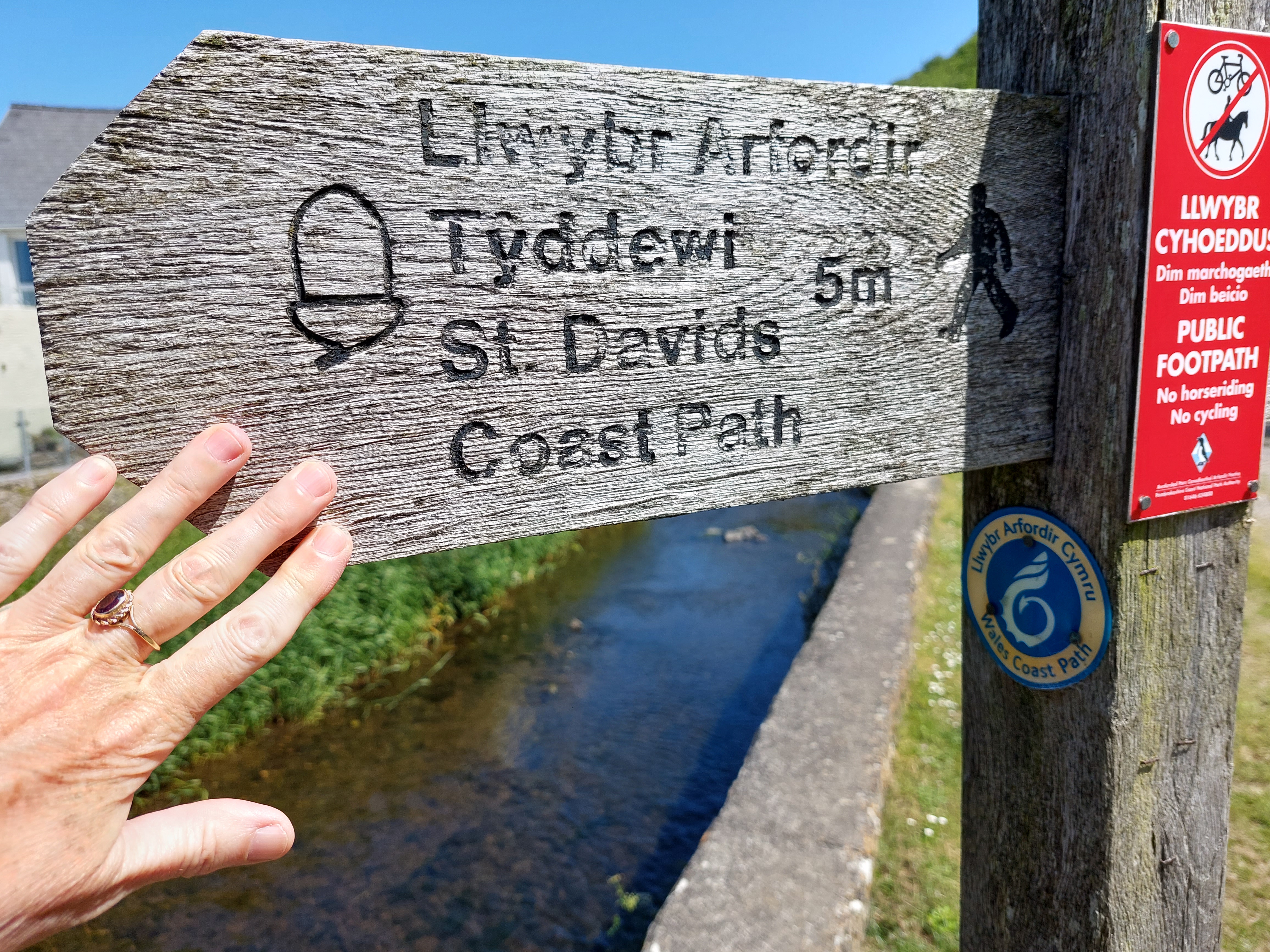 No bus options as it was Sunday, so did a circular walk from Solva and the opposite side to where I walked yesterday. I drove to the car park, and was all ready to go before 9:40am, meeting some of my neighbours from base camp before I got my boots on. I touched the touching point by the bridge. The initial outward path quickly deviated from the coast path, so I decided to count the steps when I get to the furthest point on the coast path and then walk back! Anyway the path took me up on to the Gribin – the view was great but it was a bit edgy and rather rocky! The path down to continue the walk was rocky, eroded and steep, and I took my time. I was conscious I was going to have to repeat this part of the walk going back up the path I had not enjoyed descending, and this rather weighed on my mind.